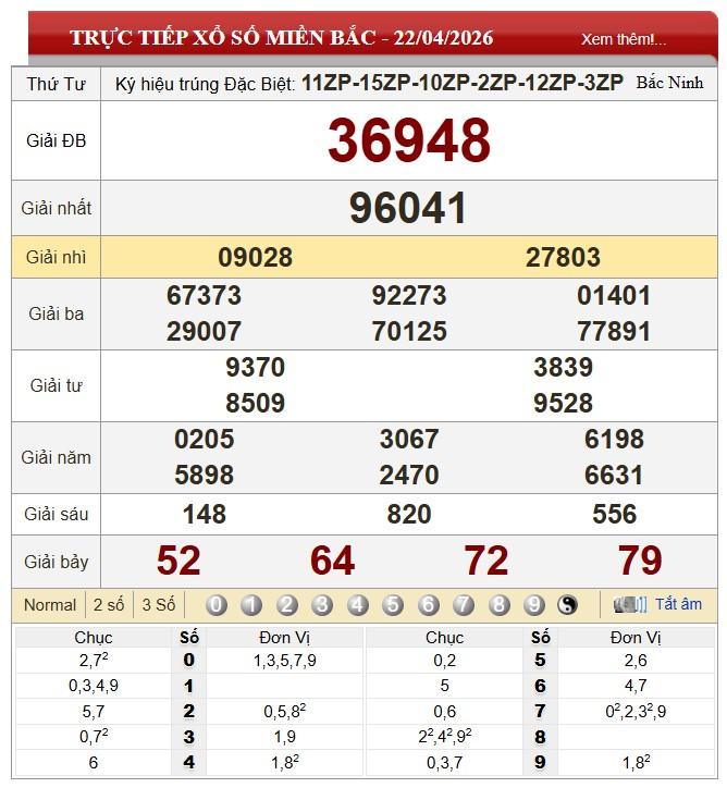 Kết quả xổ số miền Bắc (XSMB) ngày 22/4