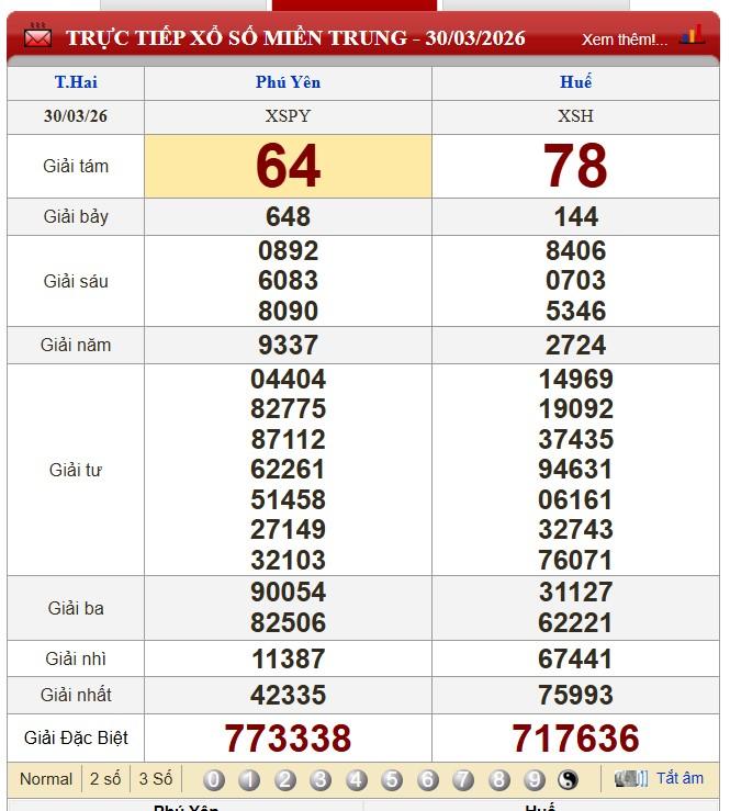 Kết quả xổ số miền Trung (XSMT) hôm nay ngày 30/3