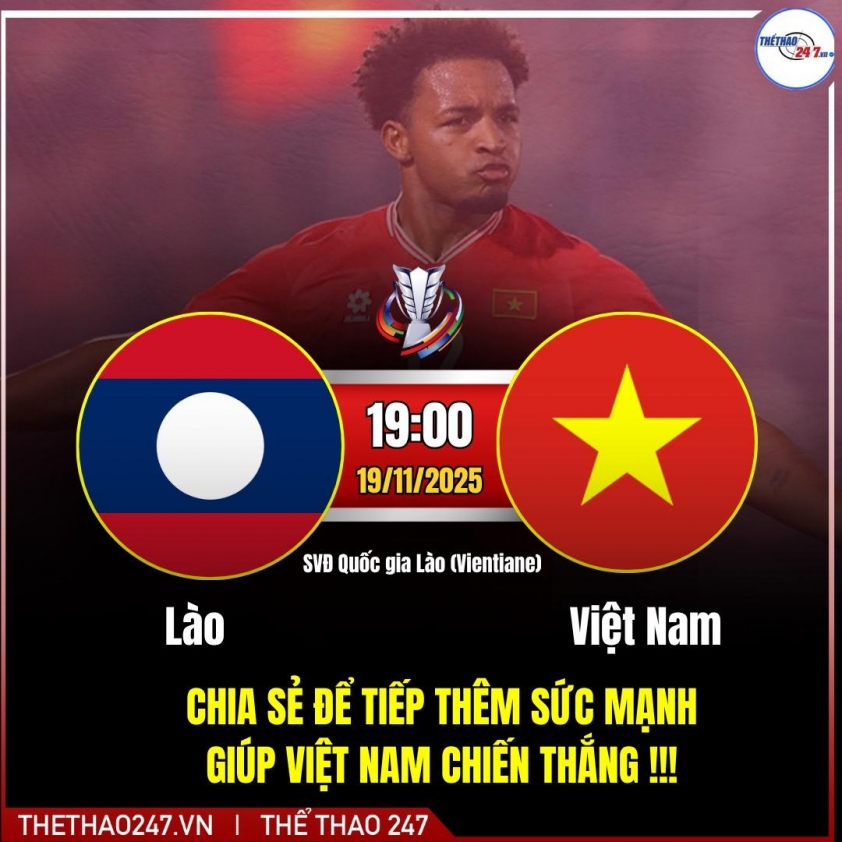 Theo thông báo chính thức từ AFC, LĐBĐ Lào và LĐBĐ Việt Nam, trận đấu giữa Lào và Việt Nam trong khuôn khổ bảng F, vòng loại Asian Cup 2027 sẽ diễn ra vào lúc 19h00 ngày 19/11 trên SVĐ Quốc gia Lào (Vientiane), thay vì ngày 18/11 như lịch ban đầu.