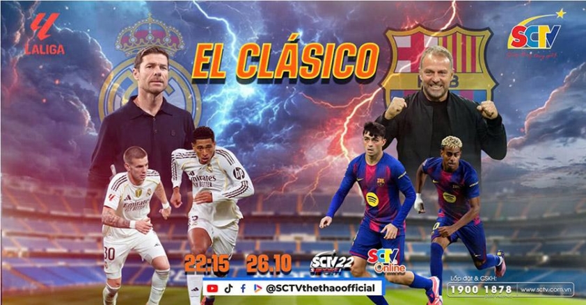 El Clasico ngày 26/10/2025 sẽ là một trận cầu đầy cảm xúc giữa hai câu lạc bộ giàu truyền thống nhất LALIGA.Hãy liên hệ tổng đài 19001878 đăng ký lắp đặt ngay truyền hình và internet của SCTV hoặc cài đặt ứng dụng SCTV Online để hòa mình vào không khí sôi động của sân Santiago Bernabéu, theo dõi màn trình diễn của những cầu thủ tài năng và chiến thuật đa dạng của những HLV lão luyện.