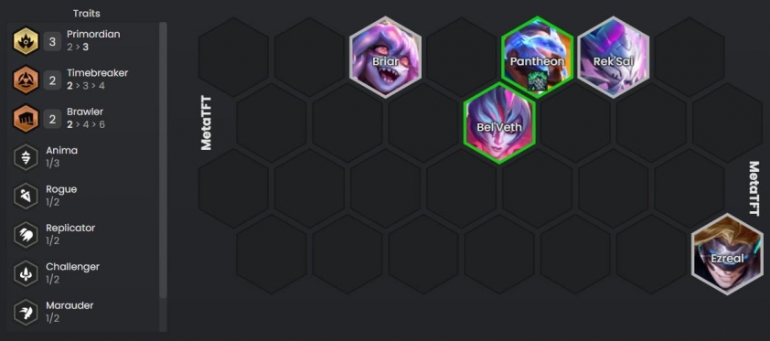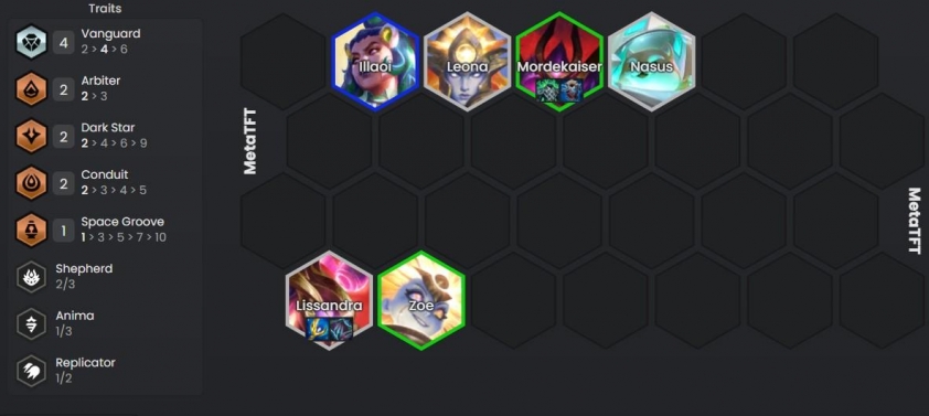 Khởi đầu, hãy bắt Leona và Zoe để kiểm tra Thần Phán, nếu ra đúng hiệu ứng thì kích hoạt Tộc/Hệ luôn nhưng chúng ta sẽ không chơi vội. Thay vào đó để 3 Thượng Cổ để lấy tướng 1-2 vàng (có thể ra Leona và Zoe), có thể flex luôn Thời Không để full thua và lấy lượt roll. Với đội hình Thượng Cổ/Thời Không thì đến vòng 3-1 chúng ta sẽ có Zoe 2 sao lập tức.