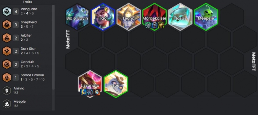 Về Lõi thì chúng ta có thể flex tùy vào trận nhưng có thể tập trung vào các Lõi reroll (nếu không có Thần reroll), đồ (nếu thiếu) và Tạo Tác (để ra Kiên Nhẫn Ekko). Về Thần thì giống như Lõi – thiếu gì lấy đó, một Thần khá mạnh với Zoe là Yasuo khi cho ô Lửa đốt rất phù hợp với Zoe để giải phóng món Quỷ Thư và thay bằng 1 trang bị AP khác.