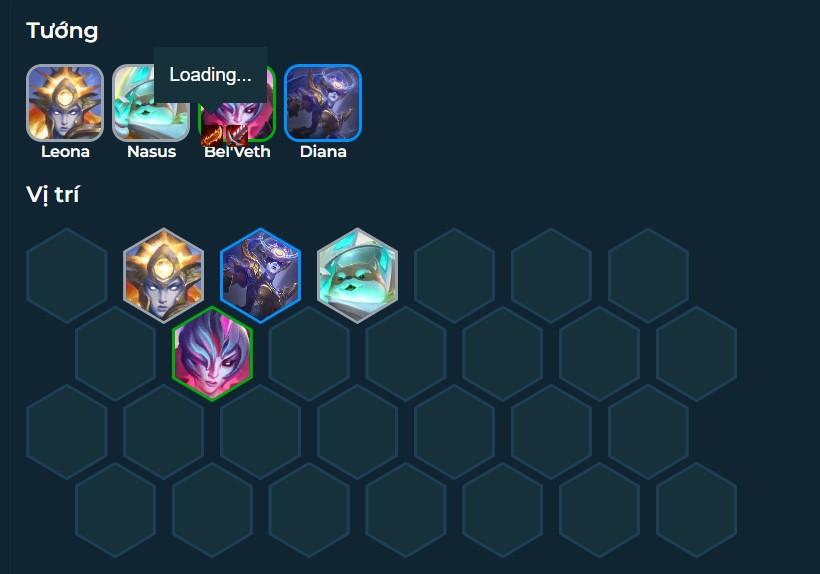 Nếu có Diana từ những round đầu, ưu tiên kẹp chung với Leona, Nasus và Bel'Veth. Trang bị sẽ được ghép cho Bel'Veth.