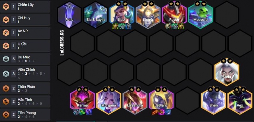 Về trang bị thì chúng ta flex hết sức có thể với việc lên đồ cho Karma trước với Quỷ Thư/Gậy Hư Không và Shojin trong khi Leblanc sẽ là bộ đồ tốc đánh AP thường thấy nhưng build sau. Hàng trên thì Robot và Illaoi sẽ là các món tank còn lại.