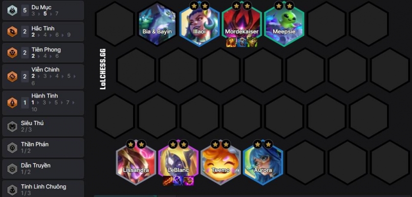 Tuy vậy, khung ổn nhất để xây dựng là chúng ta sẽ sẽ đánh theo form Du Mục Leblanc, vì có đồ khá giống có thể chuyển về sau và có Robot 4 vàng làm tướng tank sẵn khá mạnh. Ở cấp 5, 6 và 7 flex giữa Du Mục với Lissandra, Teemo cầm đồ carry tạm, Leona hay Mordekaiser sẽ cầm đồ tank :