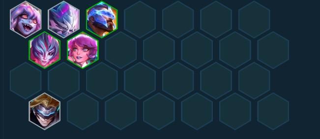 Sau khi level up lên 6, bổ sung thêm hai quân bài đấu sĩ là Bel'Veth và Gwen. Với dàn tướng này, hoàn toàn có thể giữ máu đến giai đoạn sau và khi đủ tiền up lên 7 hoặc 8, bắt đầu roll những quân bài 4 và 5 vàng như trong form bài gốc.