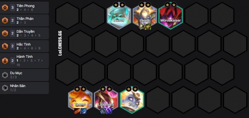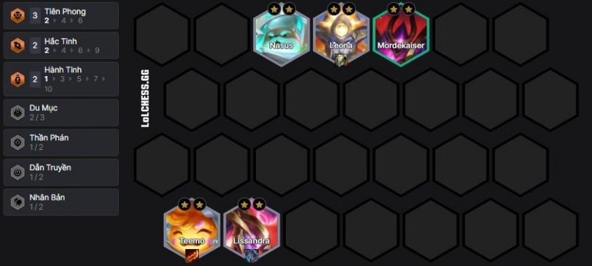 Về trang bị thì Teemo sẽ là Cuồng Đao, Diệt và Kiếm súng, Lissandra sẽ là các món đồ phụ sát thương kiểu 2 Nashor, 1 Găng Bảo Thạch hay hiệu ứng như Quỷ Thư/Gây Hư Không. Leona và các tướng Tiên Phong khỏe phía trên sẽ là 3 món tank flex.