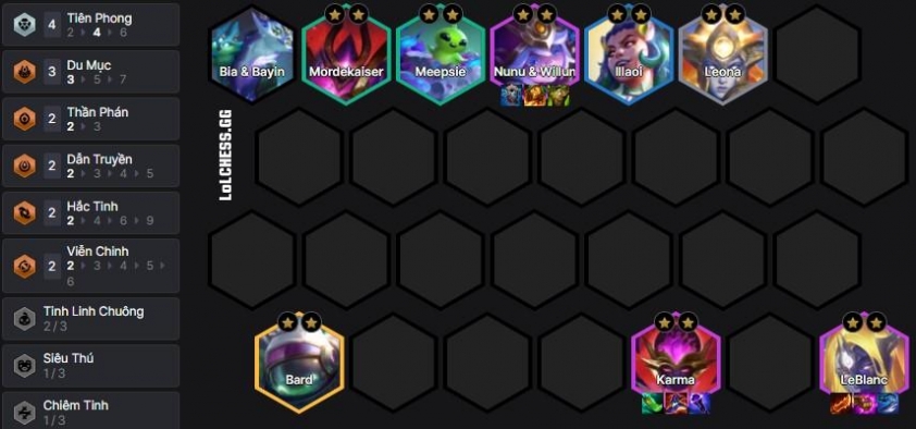 Theo đó, chúng ta sẽ xây dựng đội hình Leblanc đi lên từ khung Thần Phán và Tiên Phong quen thuộc, có thể lấy các hiệu ứng cho thêm tốc đánh cộng dồn vì kỹ năng của Leblanc tăng mạnh theo chỉ số này. Fast 8 nhanh nhất có thể và roll xuống tìm Leblanc làm chủ lực, Karma phụ sát thương cũng như các tướng Tiên Phong mạnh như Nunu, Illaoi là chúng ta đã có khung đội hình công thủ toàn diện :