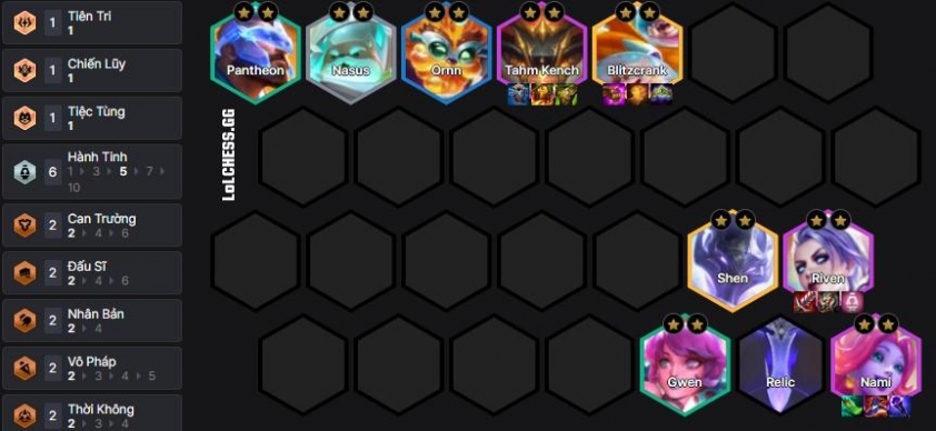 Theo đó, bộ khung mạnh nhất của Hành Tinh sẽ bao gồm 5 Hành Tinh + Riven tốt nhất là có Ấn vì Ấn Hành Tinh cực lỗi trên vị tướng này. Chúng ta sẽ fast 8 và roll xuống để tìm bộ đôi Riven, Nami đảm nhiệm 2 luồng sát thương vật lý và phép rồi up 9 thêm 5 vàng :