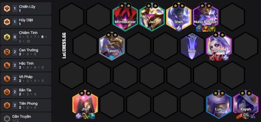 Theo đó, Chiêm Tinh Ngọn Núi dễ chơi nhất trong kiểu đội hình này khi chúng cung cấp cho các chủ lực khỏe như Shen, Riven, Jhin Ấn cần thiết để chúng không tốn slot trong đội hình và hàng tấn chỉ số nữa. Tuy vậy, Chiêm Tinh không phải là Tộc quá bá đạo hiện tại nên bạn phải giữ máu đầu game bằng nhiều cách như ghép đồ sớm, lấy các Lõi đánh nhau chẳng hạn để rồi fast 8 và 9 và tìm vị trí trong top 4.