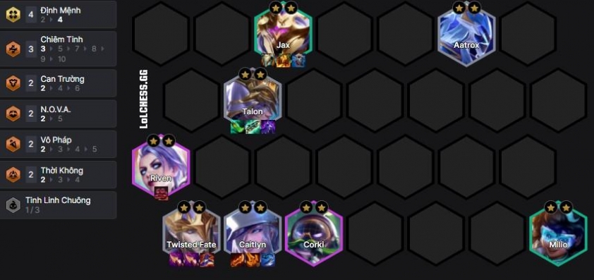 Theo đó bài đấu này có 1 điều kiện tiên quyết là chòm sao phải hợp và tốt nhất là Lõi đầu nên là Lõi bạc cho khả năng reroll 1 vàng mạnh (Trên Đà Phát Triển, Thanh Lý Toàn Bộ).Khi đó bạn sẽ rất nhanh chóng triển khai được bộ Định Mệnh và NOVA 1 vàng – 2 vàng và bắt đầu roll 3 sao chúng, sau đó có thể up cấp trở lại để bổ sung Corki và Riven để hoàn thành bài đấu.