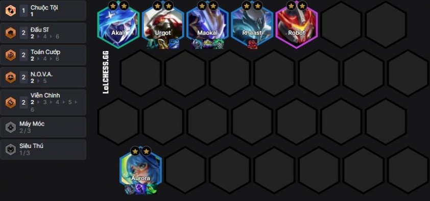 Theo đó, lối chơi Urgot reroll đã được cộng đồng tối ưu lại trong việc xây dựng trang bị và tướng bổ trợ, mang đến một lối chơi giàu sát thương trong khi Urgot hoàn toàn không thể bị sốc chết dù đặt lên hàng đầu. Bộ khung mà chúng ta hướng đến ở cấp 7 sẽ là Akali, Urgot, Maokai, Rhaast, Aurora và Robot. Biến hình cả Robot và Urgot và chúng ta sẽ có vừa đủ 8 slot đội hình :