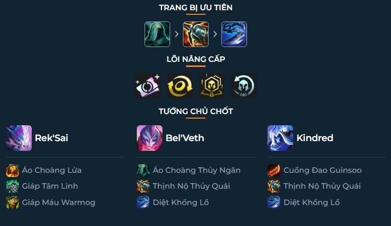 Bel’Veth ưu tiên Áo Choàng Thủy Ngân, Akali cầm Áo Choàng Bóng Đêm, sau đó bổ sung thêm 2 món sát thương.Nên hoàn thiện đủ 3 trang bị cho Bel’Veth trước.