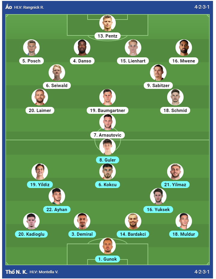 Gernot Trauner (chấn thương đùi) và Phillipp Mwene hoàn toàn không tập luyện, trong khi Philipp Lienhart và Leopold Querfeld tập luyện riêng.