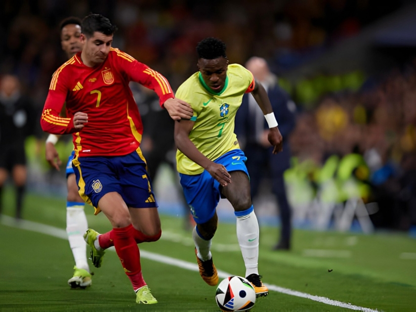 Tây Ban Nha đã có 1 trận đấu được cho là trên cơ Brazil, dẫu vậy đội bóng xứ sở Bò tót đã để đội bóng Nam Mỹ cầm hòa ở phút cuối nhờ tình huống sút penalty của Paqueta.