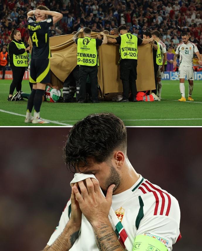 Cảnh tượng trên sân khiến nhiều người không khỏi bàng hoàng. Thủ quân của Hungary - Dominik Szoboszlai, thậm chí đã bật khóc khi chứng kiến tình trạng của đồng đội. Các cổ động viên và cầu thủ Hungary tỏ ra lo lắng và sốt ruột khi phải chờ đợi cáng cứu thương đến.