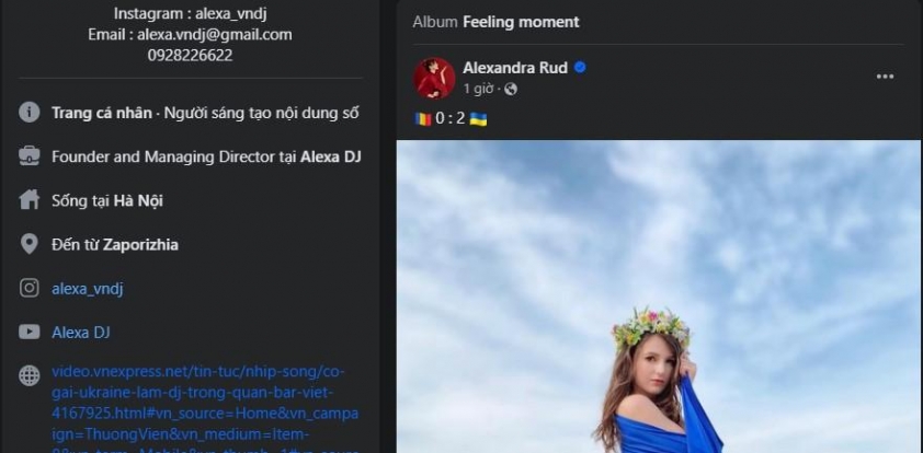 Theo đó, Alexandra Rud đã đăng dòng cap ngắn gọn trên trang Facebook cá nhân: Romania 0-2 Ukraine cùng bức ảnh nữ DJ xinh đẹp này quấn quốc kì Ukraine quanh người.