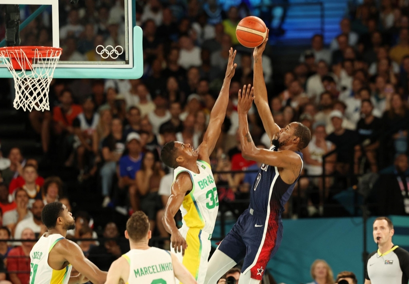Mỹ có 6 cầu thủ của mình ghi được trên 10 điểm trong chiến thắng nhẹ nhàng 122-87 trước Brazil. Devin Booker ném thành công 5 cú ba điểm để có được 18 điểm (cao nhất đội). Trung phong Joel Embiid có 14 điểm, tất cả đều được ghi trong hiệp một
