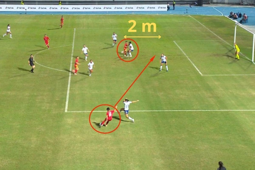 Sự việc xảy ra ở phút 29 của trận đấu. Trong thế trận giằng co, tuyển nữ Việt Nam tổ chức tấn công bài bản bên cánh phải. Vạn Sự xử lý khéo léo trước khi tung ra đường tạt bóng chuẩn xác vào khu vực cấm địa. Bích Thùy băng vào đúng thời điểm, bật cao đánh đầu tung lưới Philippines, khiến các khán đài như vỡ òa. Tuy nhiên, niềm vui của các cô gái áo đỏ nhanh chóng bị dập tắt khi trợ lý trọng tài biên bất ngờ căng cờ báo việt vị.