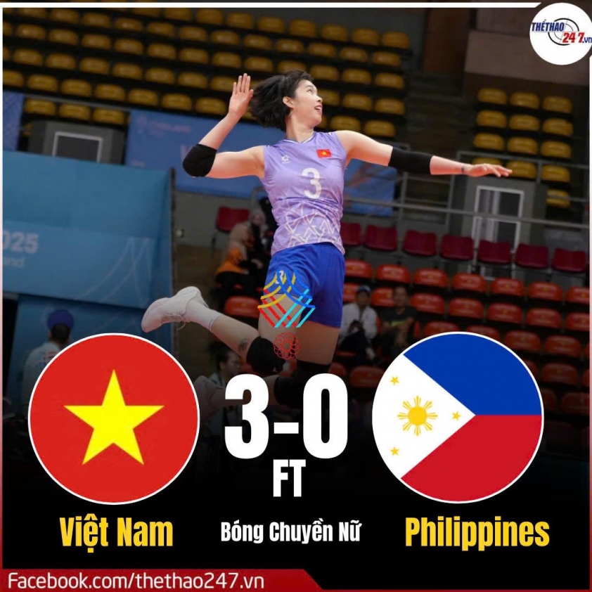 Trước Philippines, thầy trò HLV Nguyễn Tuấn Kiệt giành chiến thắng thuyết phục 3-0 với các tỉ số 25-17, 25-14 và 25-17. Dù set đầu diễn ra không hề dễ dàng khi Philippines bám đuổi quyết liệt, bản lĩnh của các trụ cột như Trần Thị Thanh Thúy, Vi Thị Như Quỳnh hay Trần Thị Bích Thủy đã giúp Việt Nam nhanh chóng kiểm soát thế trận.
