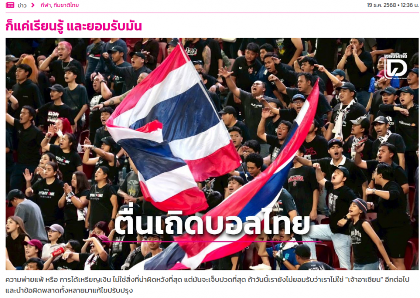 Một chi tiết đáng chú ý khác được Daily News đề cập là phản ứng của người hâm mộ Thái Lan sau thất bại. Tờ báo kêu gọi CĐV ngừng chỉ trích cảm tính và thay vào đó là nhìn thẳng vào thực tế, học cách chấp nhận và tìm giải pháp.Theo Daily News, bóng đá Thái Lan chỉ có thể trở lại vị thế dẫn đầu nếu dám thừa nhận rằng mình đang đi sau Việt Nam, thay vì phủ nhận hoặc đổ lỗi.