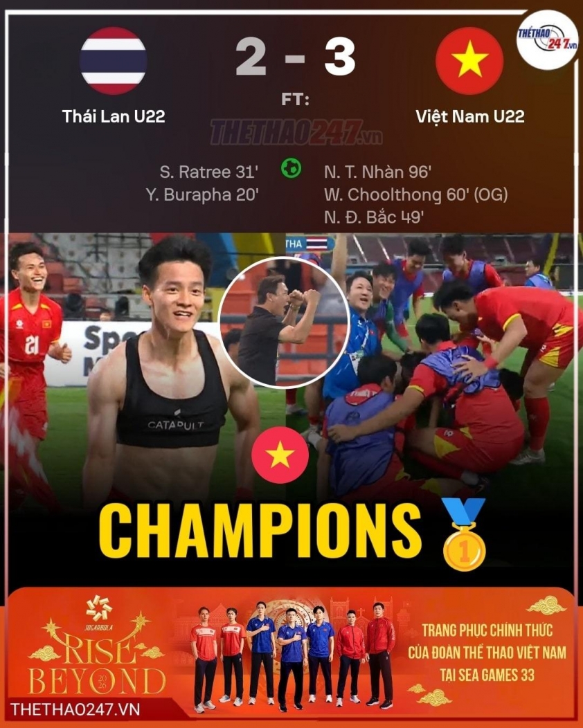 Trận chung kết bóng đá nam SEA Games 2025 đã diễn ra theo kịch bản đầy cảm xúc và cũng vô cùng cay đắng với bóng đá Thái Lan. U22 Thái Lan khởi đầu như mơ khi áp đảo U22 Việt Nam ngay trong hiệp 1 và dẫn trước 2-0, tưởng như đã chạm tay vào tấm HCV trên sân nhà Rajamangala. Tuy nhiên, nhờ những sự thay người mang tính bước ngoặt của HLV Kim Sang-sik, U22 Việt Nam đã từng bước lật ngược thế cờ, gỡ hòa trong thời gian thi đấu chính thức trước khi hoàn tất màn lội ngược dòng thắng 3-2 sau 120 phút nghẹt thở vào tối 18/12.