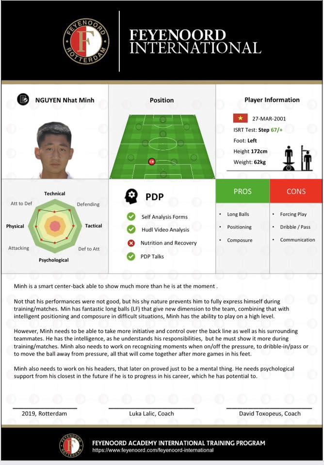 Tuy nhiên, Nhật Minh được khuyến nghị cần tự tin hơn trong giao tiếp và chỉ huy hàng phòng ngự. Việc còn dè dặt khiến anh chưa phát huy trọn vẹn năng lực.Trong khi đó, Nguyễn Quốc Việt và Nguyễn Thái Quốc Cường được ghi nhận là những cầu thủ tấn công giàu kỹ thuật, nhưng cần hoàn thiện thêm thể chất, bản lĩnh và tính ổn định để vươn tầm chuyên nghiệp.