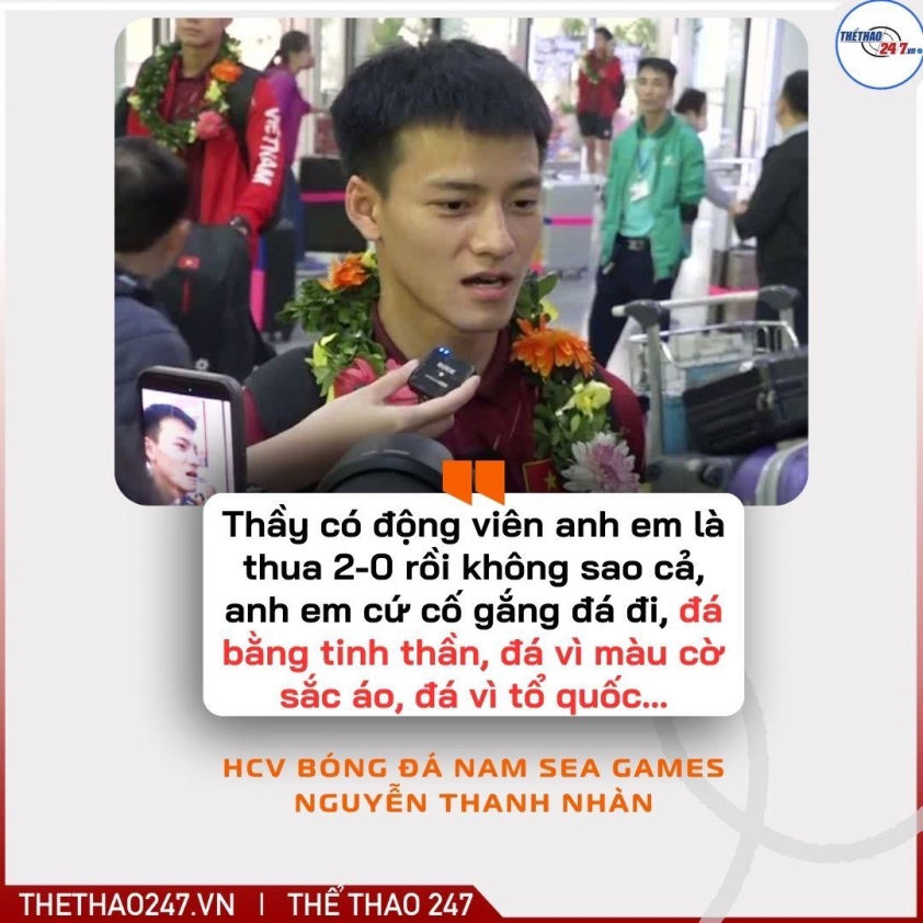 Thanh Nhàn nhớ lại: “Giờ nghỉ giữa hiệp thì thầy có động viên anh em là thua 2-0 rồi không sao cả, anh em cứ cố gắng đá đi, đá bằng tinh thần, đá vì màu cờ sắc áo, đá vì tổ quốc... và anh em đã làm được!”. Phát biểu ngắn gọn nhưng chứa đựng niềm tin đã trở thành chất xúc tác cho màn lội ngược dòng không tưởng.