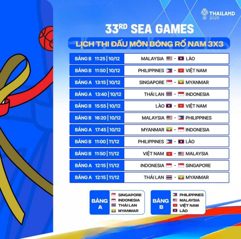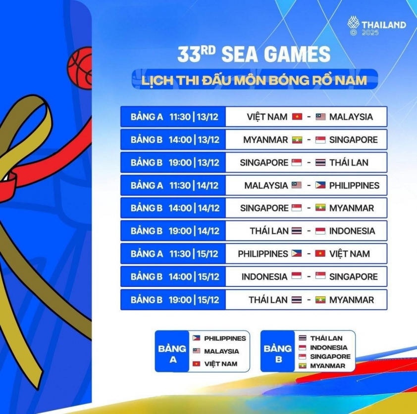 Năm nay, bóng rổ gồm bốn bộ huy chương: nam và nữ ở hai nội dung 3x3 và 5x5. Nội dung 3x3 diễn ra trong hai ngày 10 và 11/12, hứa hẹn mang đến nhịp độ nhanh và nhiều bất ngờ. Trong khi đó, nội dung 5x5, nơi Malaysia đặt kỳ vọng lớn nhất, sẽ khởi tranh từ 13 đến 19/12 với lịch thi đấu dày đặc.