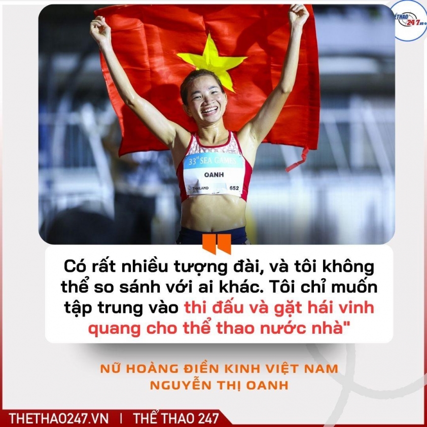 Sau khi cán đích, Oanh không giấu được niềm hạnh phúc. “Tôi quá vui và hạnh phúc”, cô chia sẻ. Dù được nhiều người gọi là “tượng đài” SEA Games, chân chạy quê Bắc Giang vẫn giữ sự khiêm nhường. “Nhiều người nói đến tôi là tượng đài vì những con số. Nhưng theo tôi, có rất nhiều tượng đài, và tôi không thể so sánh với ai khác.”