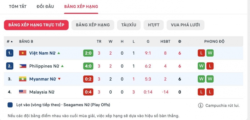 Trong khi đó Philippines lại thắng đậm Malaysia ở trận đấu cùng giờ. Với những kết quả này, U22 Myanmar bị loại đầy cay đắng dù thắng 2 lượt trận đầu tiên và có cùng 6 điểm như U22 Việt Nam và U22 Philippines. Đây là 2 đội tuyển đi tiếp vào bán kết bóng đá nữ SEA Games 33 ở bảng B.