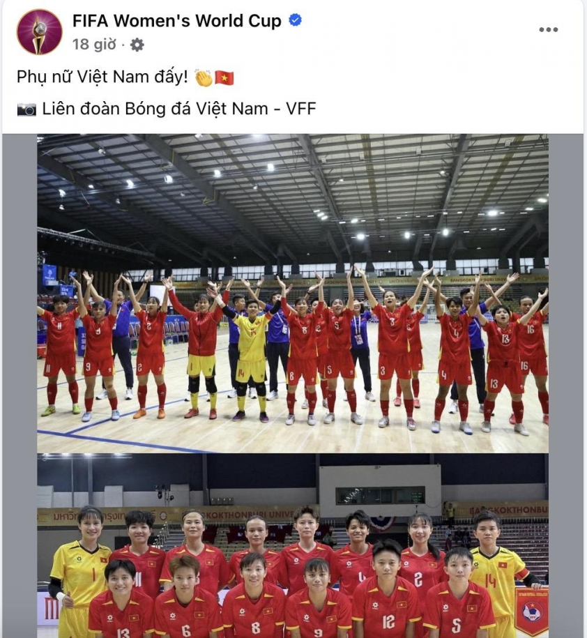 Fanpage FIFA Women World Cup cũng dành lời khen cho ĐT futsal nữ Việt Nam bằng dòng trạng thái ngắn gọn: "Phụ nữ Việt Nam đấy". Sau đó, fanpage chính thức này của FIFA tiếp tục đăng tải hình ảnh cầu thủ Trần Thị Thùy Trang cùng nội dung "Một điều mà chẳng ai làm được".