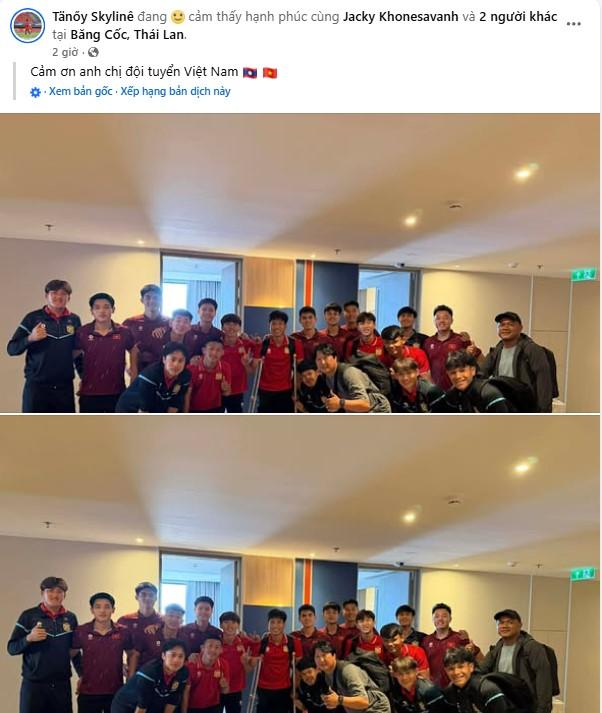 Phetdavanh Somsanid cũng đáp lại tình cảm của U22 Việt Nam bằng dòng trạng thái: "Cảm ơn anh chị đội tuyển Việt Nam". Mặc dù thường xuyên gặp nhau ở các giải đấu nhưng có thể thấy tình cảm hữu nghị, thân thiết giữa 2 bóng đá Việt Nam và Lào vẫn được duy trì rất tốt đẹp.