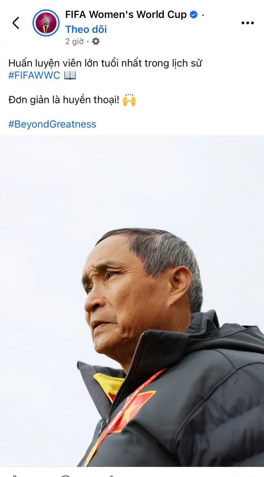 Trang chủ FIFA Women’s World Cup mới đây đã đăng tải một bài đăng đặc biệt tôn vinh HLV Mai Đức Chung, vị chiến lược gia của ĐT nữ Việt Nam. Bài đăng có nội dung tôn vinh 'bố Chung' là vị HLV lớn tuổi nhất trong lịch sử các kỳ FIFA Women’s World Cup.