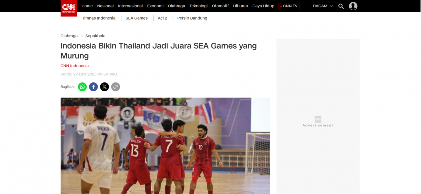 Theo tờ báo này, Indonesia “đã khiến Thái Lan thất bại toàn diện”. 2/4 mục tiêu của Thái Lan đã bị Indonesia chặn đứng. Ở nội dung futsal nữ, Indonesia đã loại Thái Lan ở bán kết với tỷ số 7-6 trên chấm luân lưu, sau khi hòa 4-4. Trong khi ở nội dung futsal nam, Indonesia hủy diệt Thái Lan 6-1 ở lượt trận cuối để giành HCV trong sự ngỡ ngàng của nước chủ nhà.