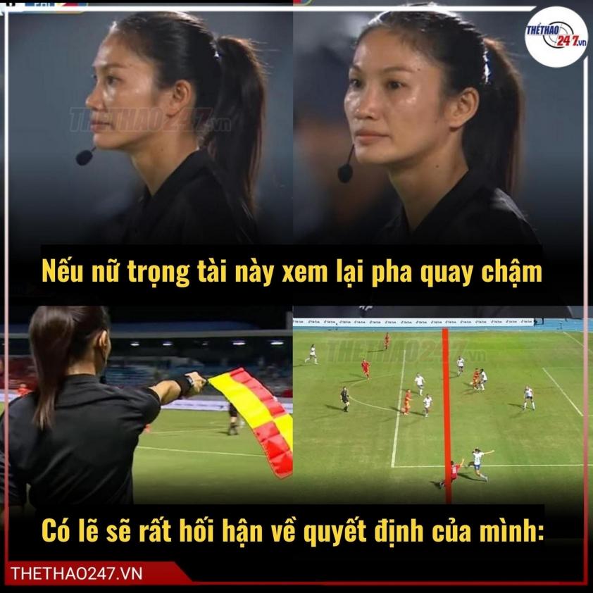 Đây là một quyết định sai lầm chấn động, bởi hình ảnh quay chậm cho thấy tiền vệ của Việt Nam hoàn toàn hợp lệ và đứng dưới hàng thủ đối phương khoảng cách đáng kể. Đáng nói, trước khi trọng tài biên phất cờ báo "việt vị, trọng tài chính Rebecca Anne Durcau đã chỉ tay về vạch giữa sân, nhằm báo hiệu rằng bàn thắng hợp lệ cho đoàn quân của HLV Mai Đức Chung.