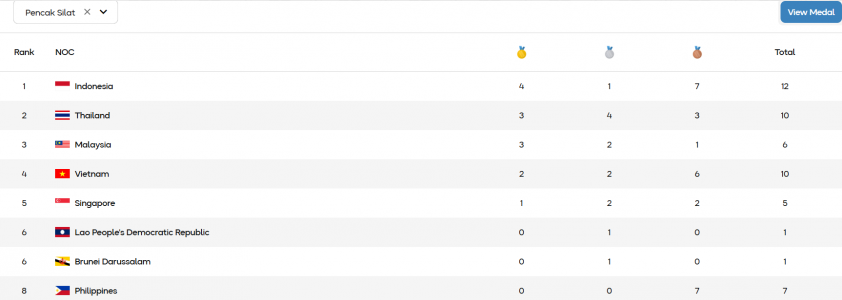 Trong khi đó, Indonesia “cái nôi” của Pencak Silat tiếp tục khẳng định vị thế của mình với ngôi nhất toàn đoàn.Xứ vạn đảo giành được 4 HCV, 1 HCB và 7 HCĐ. Họ đã giành đến 16 huy chương trên tổng số 23 nội dung tranh tài ở SEA Games 33.