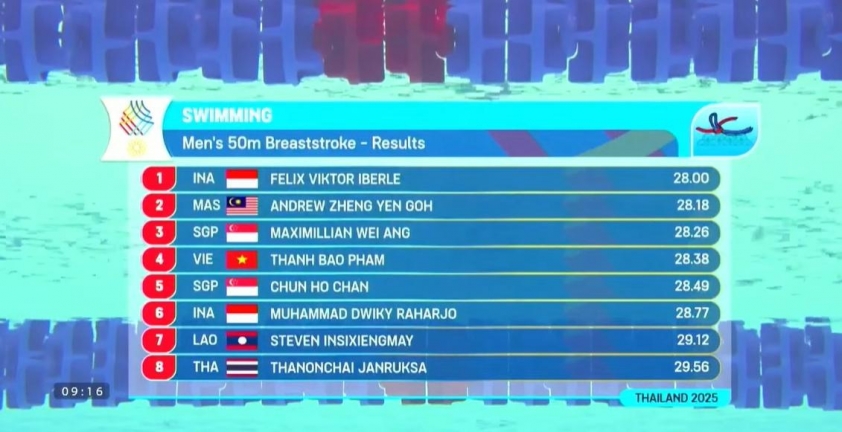 Ở vòng loại nội dung 50m bơi ếch nam, Phạm Thanh Bảo đứng 4 và giành vé vào chung kết.