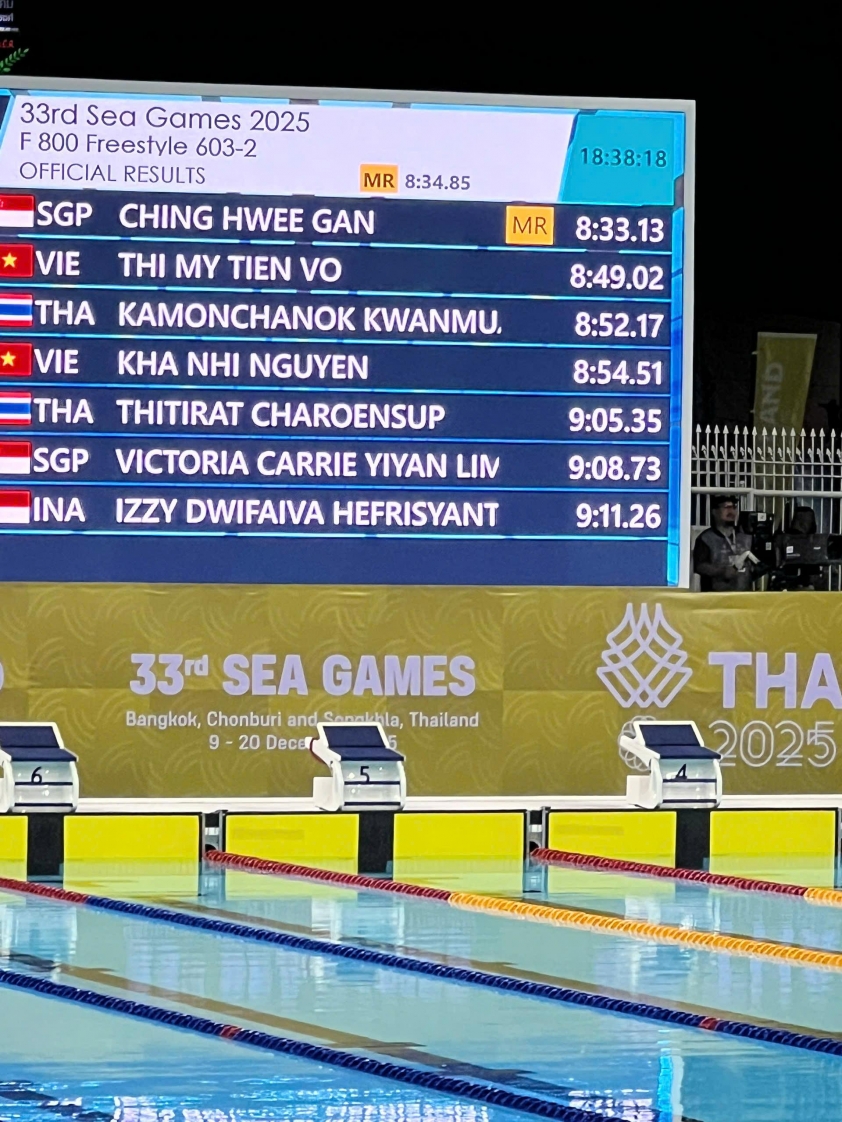 | 18:00 | 800m Tự do Nữ | Chung kết | Võ Thị Mỹ Tiên, Nguyễn Khả Nhi | ||