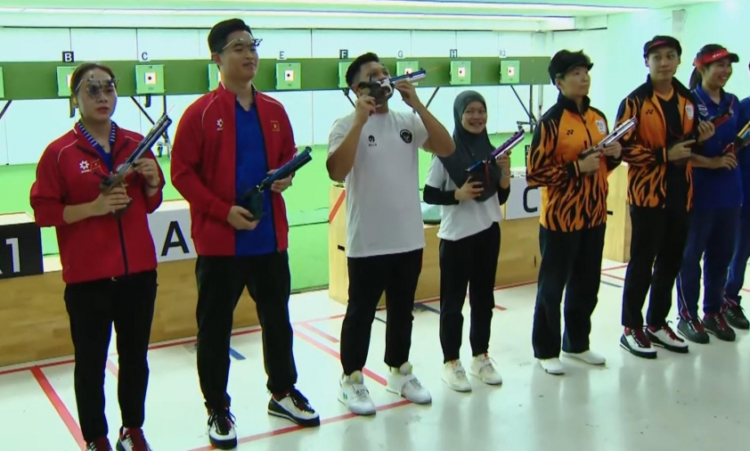 Bộ đôi xạ thủ Phạm Quang Huy và Trịnh Thu Vinh để thua 2 đối thủ Indonesia trong trận chung kết nội dung 10m súng ngắn hơi đồng đội hỗn hợp.