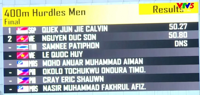 Nguyễn Đức Sơn giành được tấm HCB nội dung 400m vượt rào nam