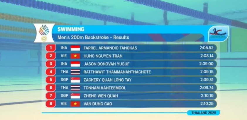 | 18:00 | 50m Ếch Nam | Chung kết | (Nếu qua VL) | ||