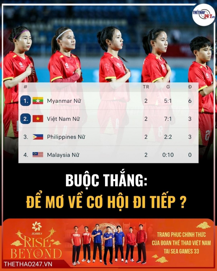 ĐT nữ Việt Nam đã bất ngờ trắng tay ở lượt đấu thứ 2 bảng B SEA Games với thất bại trước Philippines. Bàn thua ở những phút cuối cùng đã khiến đoàn quân của HLV Mai Đức Chung chưa thể hoàn thành mục tiêu giành vé đi tiếp, qua đó phải chờ đến lượt đấu cuối.