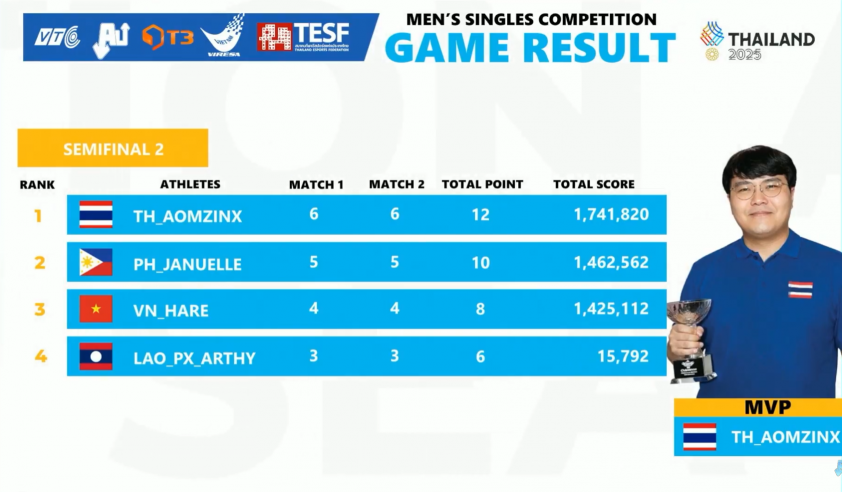 Chung cuộc, Legato giành huy chương vàng cho Thái Lan, Demo nhận HCB và Hare mang về HCĐ cho Việt Nam. Ngay sau khi ván đấu kết thúc, Demo ôm mặt khóc nức nở vì tiếc nuối.