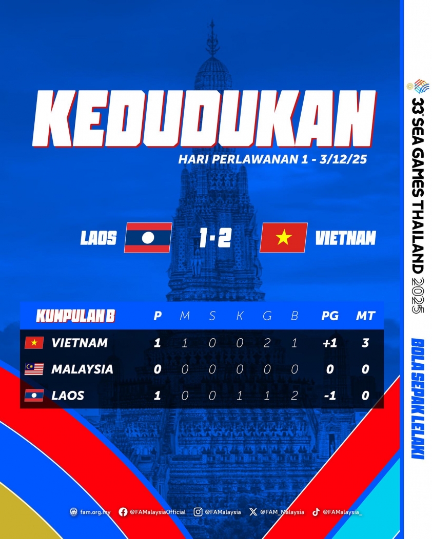 Với 3 điểm trước Lào, U22 Việt Nam tạm thời dẫn đầu bảng B môn bóng đá nam SEA Games 33. Tuy nhiên việc chỉ thắng với cách biệt tối thiểu 2-1 khiến U22 Việt Nam có thể gặp bất lợi nếu như ở lượt 2 U22 Malaysia thắng đậm Lào.