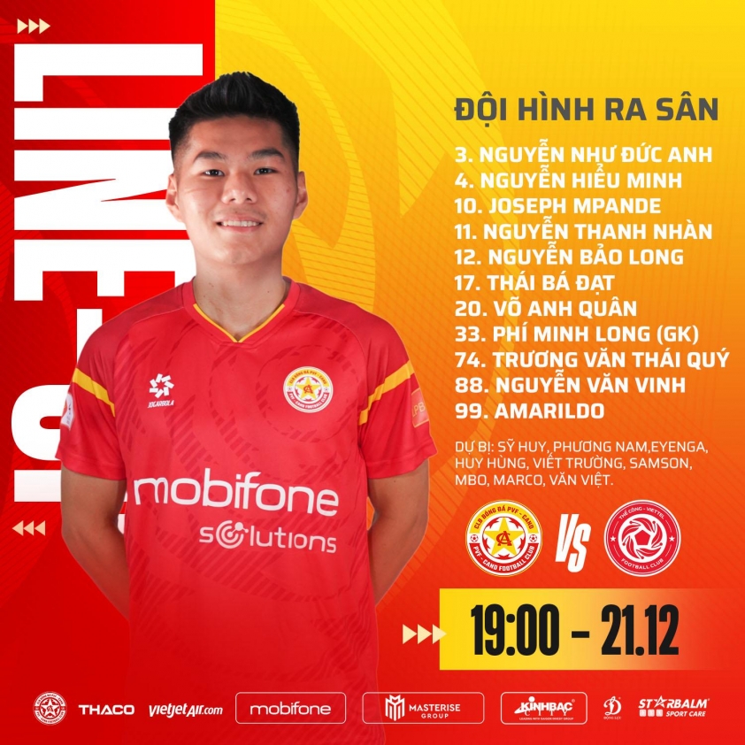 CLB PVF CAND gây bất ngờ nhất khi để bộ 3 Thanh Nhàn, Hiểu Minh, Võ Anh Quân đá chính ngay từ đầu dù những cầu thủ này vừa trở về từ Thái Lan vào ngày 19. Trong đó Hiểu Minh còn đá trọn vẹn 90 phút trong trận chung kết với U22 Thái Lan còn Thanh Nhàn vào sân từ hiệp 2 nhưng là cầu thủ tỏa sáng với bàn thắng ấn định tỷ số 3-2 cho U22 Việt Nam.