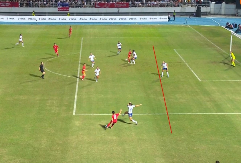 Quá khó tin khi trọng tài không công nhận bàn thắng của Bích Thùy vì lỗi việt vị.Tiền vệ ĐT Việt Nam còn cách trung vệ cuối cùng rất xa.