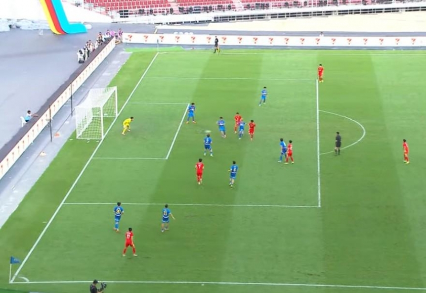 Từ đường tạt bóng sớm bên phía cánh trái, bóng tìm đến vị trí của Khuất Văn Khang, tuy nhiên cầu thủ bên phía Philippines đã nhanh hơn 1 nhịp và cản phá được đường bóng.