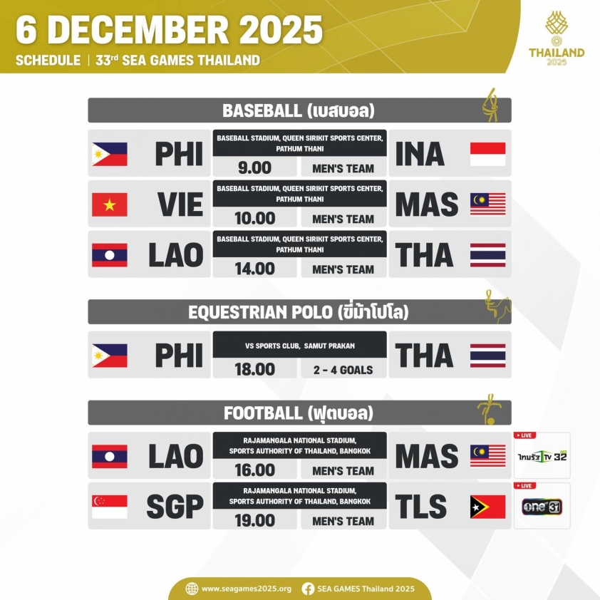 | 6/12 | 16h00 | Bóng đá | U22 Malaysia vs U22 Lào | VTV5, VTV7 |