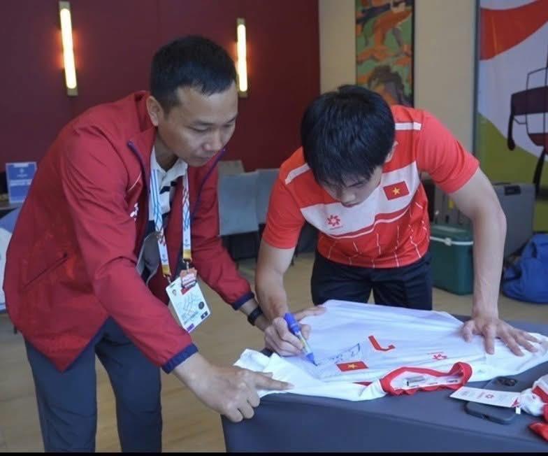 Chiếc áo thi đấu này đã đi cùng Đình Bắc qua 4 trận đấu đầy khó khăn của U22 Việt Nam tại SEA Games 33, trước khi toàn đội giành được tấm HCV quý giá. Chính vì thế, nó có ý nghĩa rất lớn với anh.